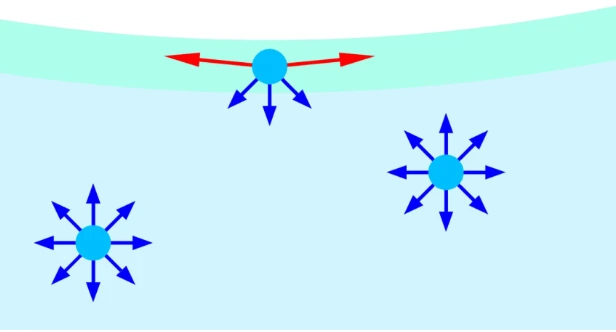 Esto ocurre cuando el agua está en contacto con suelos o incluso con otras moléculas de agua. En el interior del líquido, cada molécula está rodeada por otras moléculas y experimenta fuerzas equilibradas en todas direcciones. En la superficie, las moléculas no están rodeadas en todos los lados y experimentan una fuerza neta hacia adentro porque hay menos moléculas vecinas arriba. Este desequilibrio crea ese efecto de “piel” en la superficie, que es lo que llamamos tensión superficial.